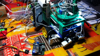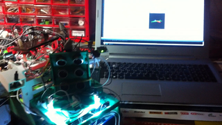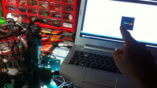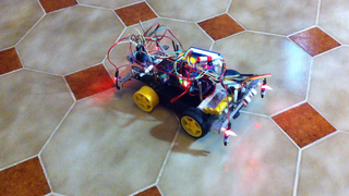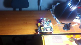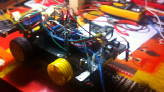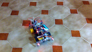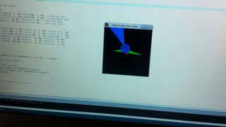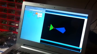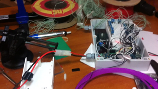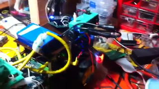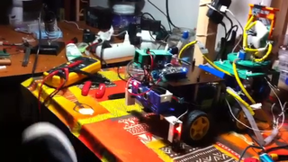 Il bouge et obéit à la télécommande wifi depuis le mobile Sur le PC par un autre lien wifi on voit la projection pseudo 3d du scan des radars et de l'horizon artificiel | ![]() ![]() ![]() ![]() | |